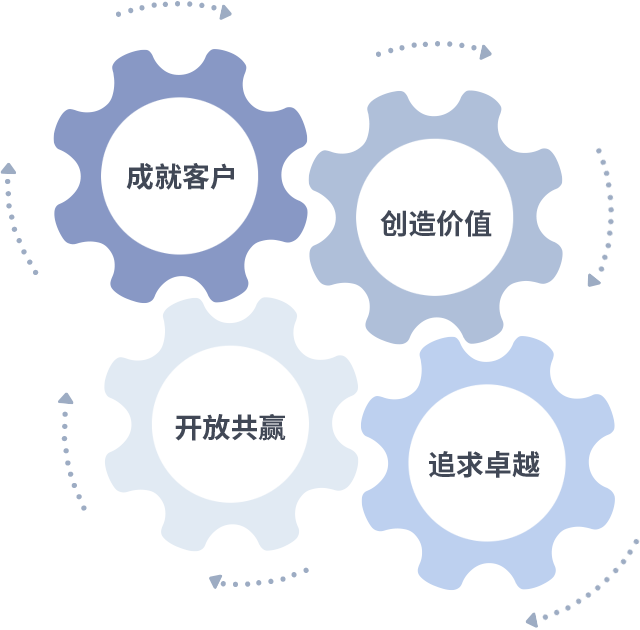 成就客户是一切决策的出发点,创造价值是衡量所有工作的标准,追求卓越是pp电子做事做人的态度,开放共赢是pp电子的格局也是最终的结果。价值观的齿轮环环相扣,推动着组织里的每个人不断向前。